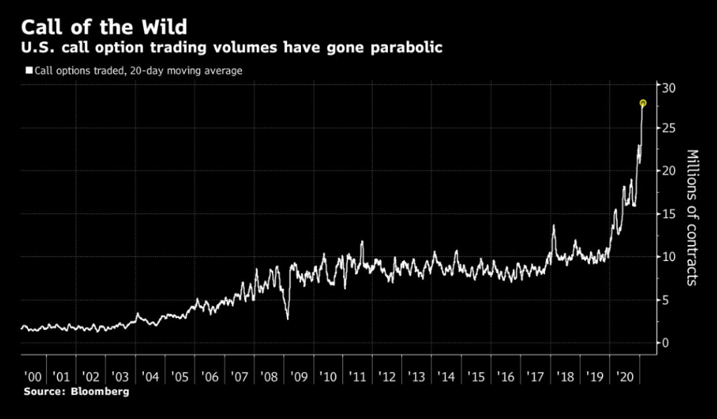 After the introduction of transaction-free brokers, such as Robinhood, the number of options traded skyrocketed.